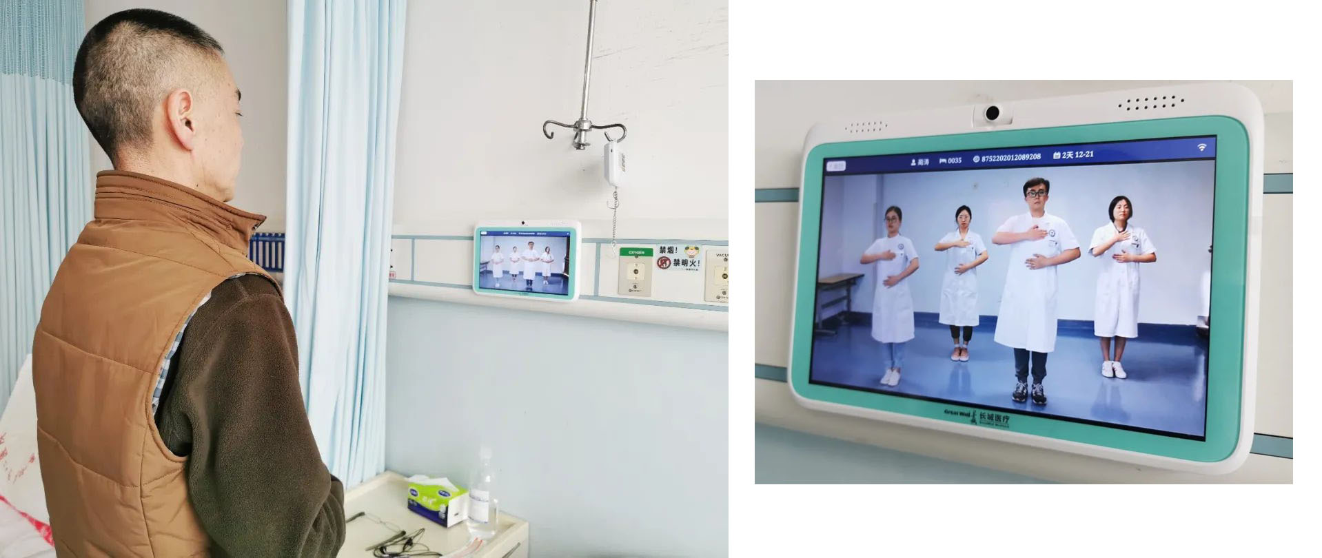 在市中心醫(yī)院心胸外科病房,剛?cè)朐旱牧质迨逭龑?duì)著病床床頭的電子屏幕跟著醫(yī)護(hù)人員一起做呼吸訓(xùn)練操……林叔叔因肺部結(jié)節(jié)入院準(zhǔn)備手術(shù),術(shù)前術(shù)后的呼吸訓(xùn)練能幫助他快速康復(fù),“以前我們會(huì)把患者集中組織起來(lái)教他們做呼吸訓(xùn)練操,但是可能學(xué)一次就忘了,現(xiàn)在我們把這些健教視頻放在患者床頭的電子屏上,患者可隨時(shí)可以點(diǎn)進(jìn)去跟著練習(xí),”護(hù)士長(zhǎng)李金學(xué)介紹,“除此之外,林叔叔還可以通過(guò)這塊屏幕實(shí)現(xiàn)診療計(jì)劃查詢、床旁掃碼繳費(fèi)、費(fèi)用明細(xì)查詢……以后我們還想利用這套信息系統(tǒng)完成床旁結(jié)算,患者從住院到出院,在病房就能一站式完成。”